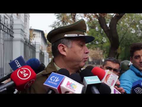 En el acto, Carabineros detuvo a dos estudiantes que fueron sorprendidos preparando cuatro botellas con pintura.