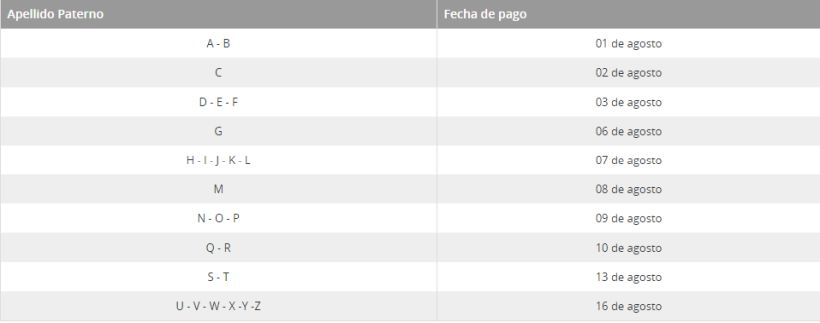 Según lo señalado por la entidad bancaria, la entrega del dinero comenzará el 1 de agosto y se realizará a partir de las iniciales de los apellidos paternos de los inscritos, por lo que en esta jornada le corresponderá a la A y B .