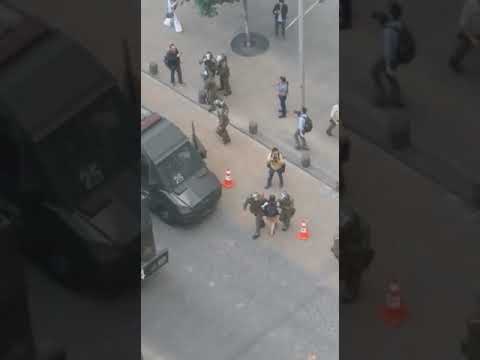 Un grupo de estudiantes agrupados en la Aces llegó esta mañana hasta la Dirección General de Carabineros, en el centro de Santiago, para protestar por el homicidio del comunero Camilo Catrillanca.