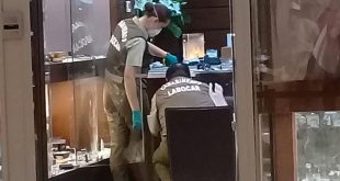 19/01/2019 22:16:44En menos de un minuto los sospechosos lograron sustraer diferentes joyas de oro desde el recinto, las que fueron avaluadas en unos 2 millones de pesos. Esta mañana una banda de delincuentes llegó hasta la galería Santo Domingo, ubicada en el centro de Santiago, para asaltar una tienda de …